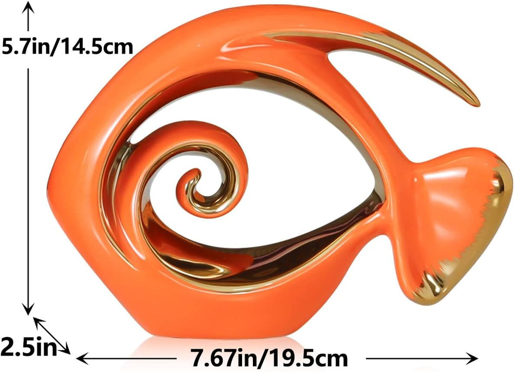 Orange Gold Keramik Fisch Figuren – Küste Wohnkultur, moderne Ozean Mittelstücke für Wohnzimmer, Ess