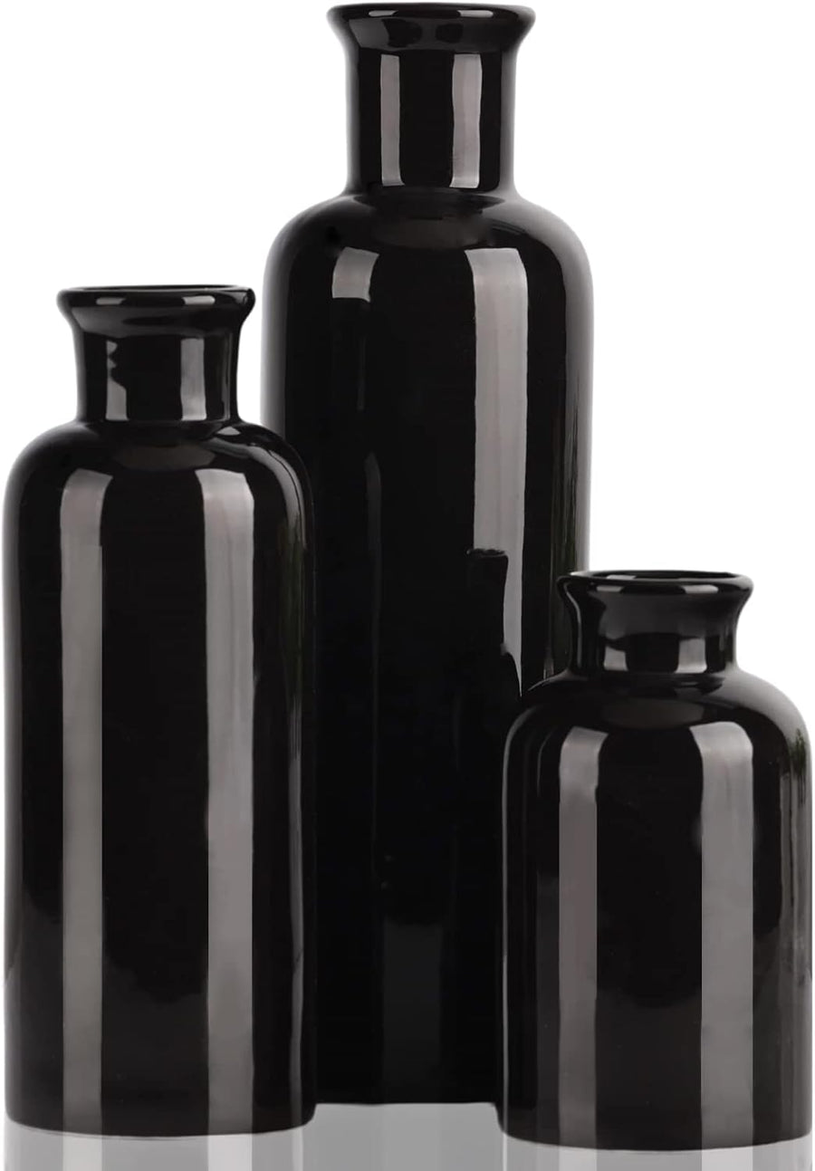 Schwarzes Keramikvasen-Set – 3 kleine Vasen, minimalistisches Dekor, Boho-Vasen, Moderne Bauernhaus-
