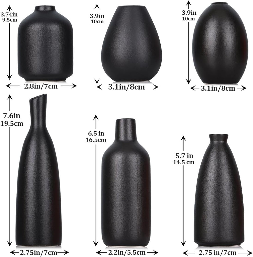 Schwarze Keramik Knospen Vasen Set von 6, Bauernhaus Dekor, Kamindekor, Kaminsims & Regal Dekor, Hei