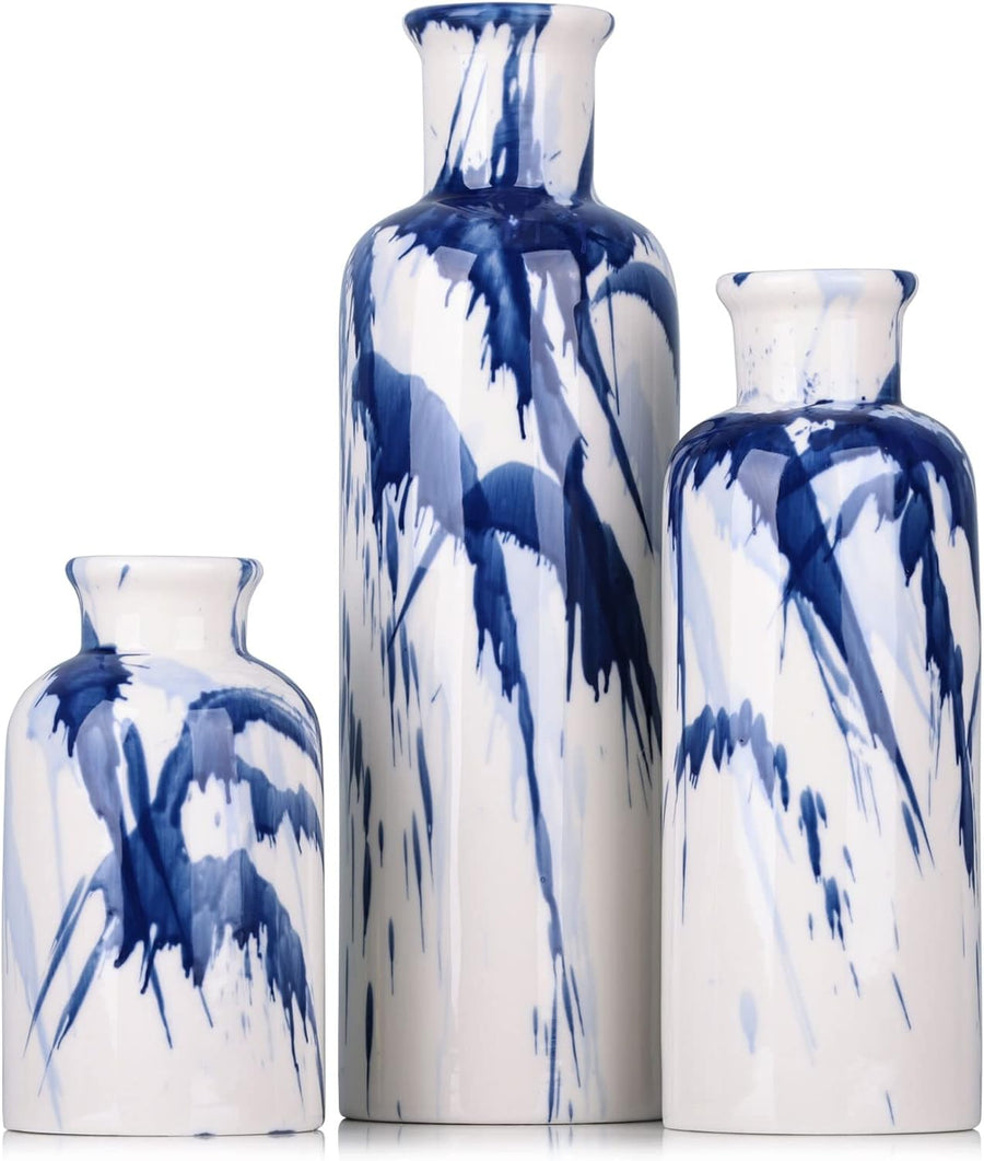 Blaue Keramikvase, 3er-Set – dekorative marineblaue und weisse Vase für Tafelaufsätze, Bauernhaus- u