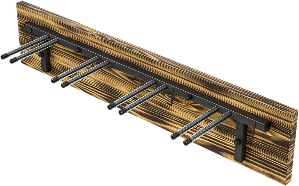 QLS Skihalterung S3 Wand Skihalter für 4 Paare 83 cm Stahl Holz hölzerne Hakenleiste Nordic Walking