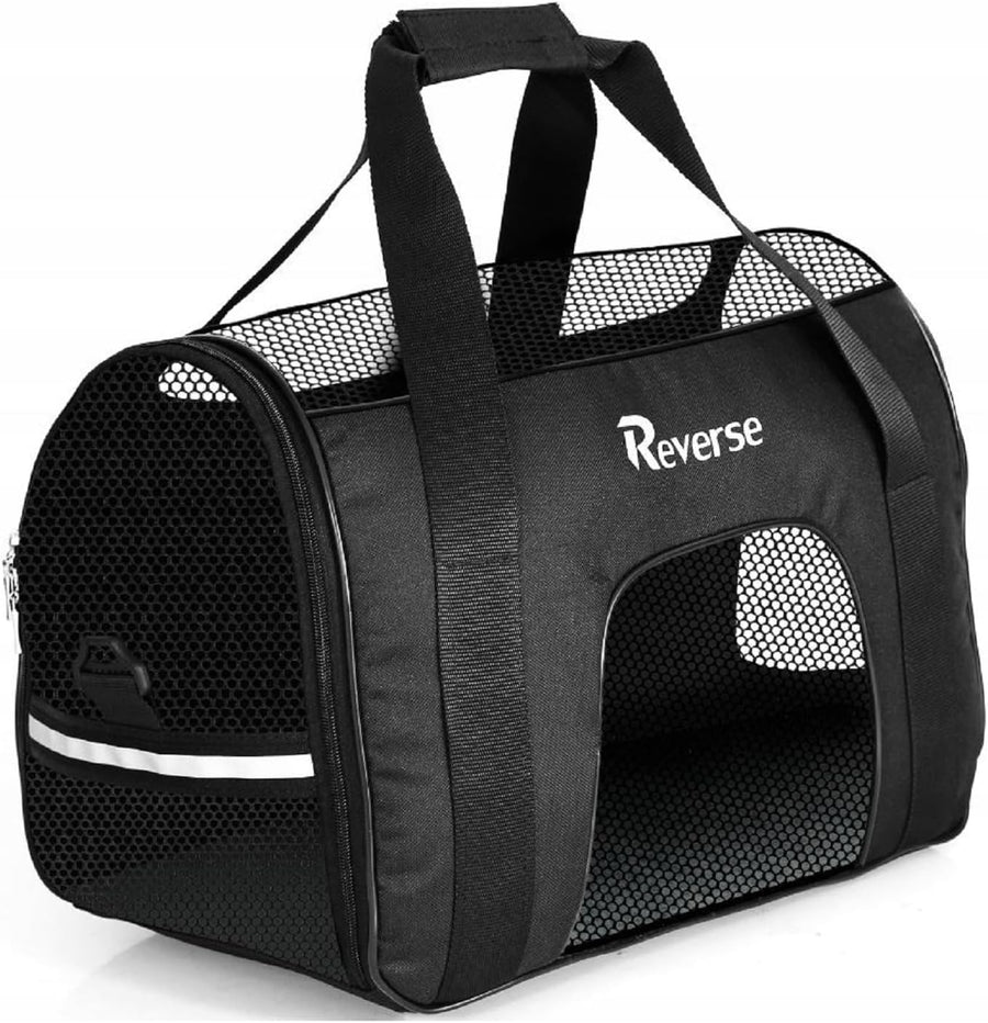 Tragetasche für Katzen Hunde Haustiere 52x25x34 cm bis 10 Kg Meshfenster Transparent (Schwarz), Schw