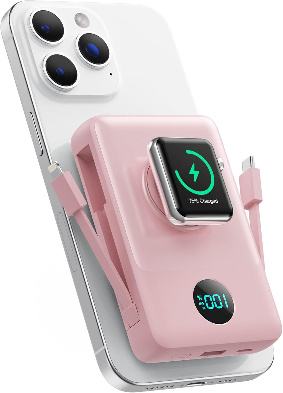 Magnetische Power Bank mit Ladekabel für MagSafe, 10800mAh Wireless PowerBank mit i-Watch Ladegerät,