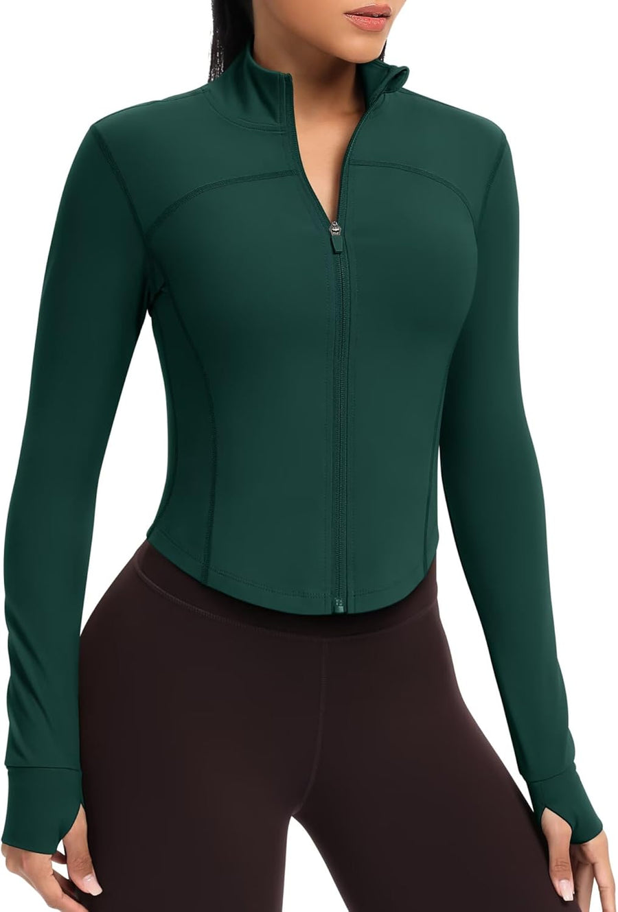 QUEENIEKE Kurze Damen Sportjacke – Leichtes atmungsaktives Yoga-Oberteil mit Daumenlöchern für Fitne