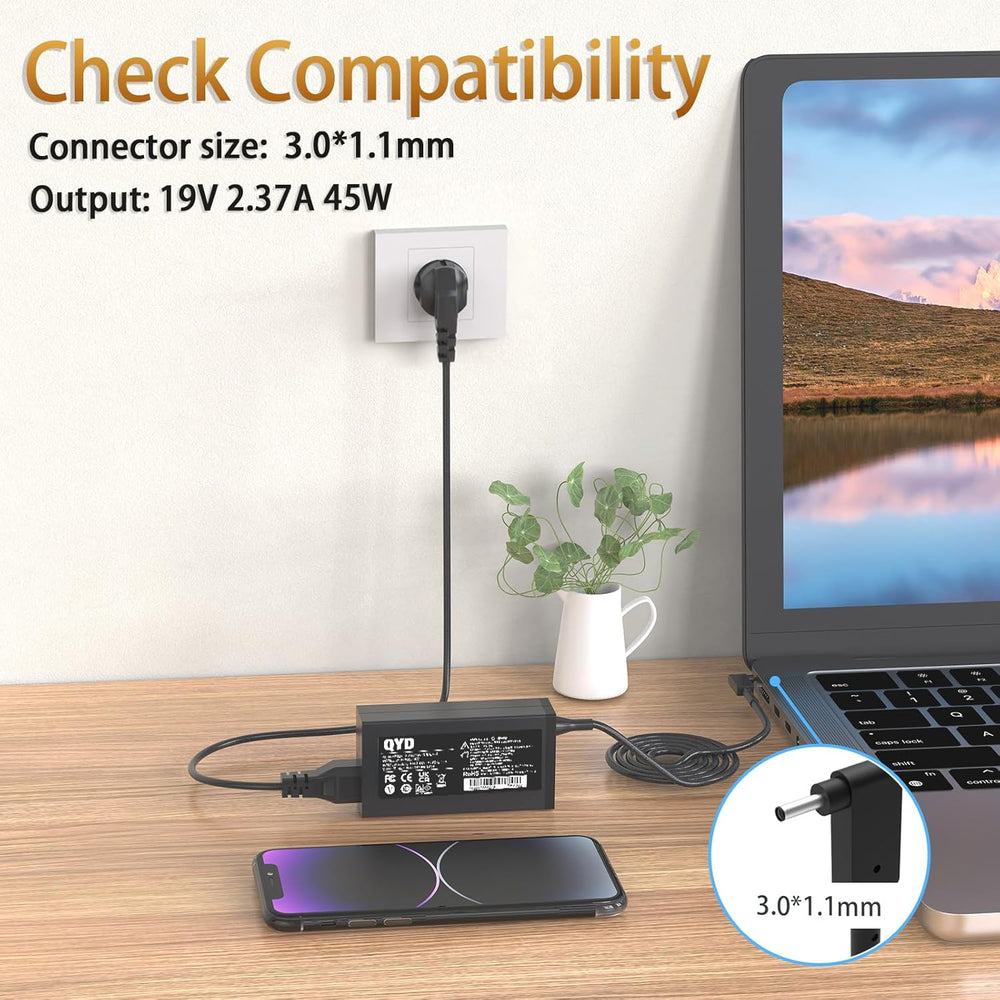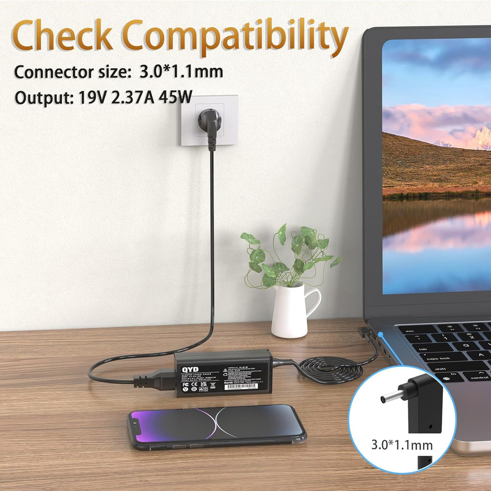 QYD 45W USB Type-C PD Netzteil Notebook Ladegerät für Dell XPS 12 9250 XPS 13 9360 9370 Inspiron 14