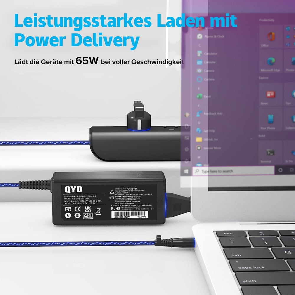 QYD 45W 65W Ersatz Netzteil Notebook Ladegerät für HP N17908 V85 613153-001 6715B 6735B 6735S Eliteb