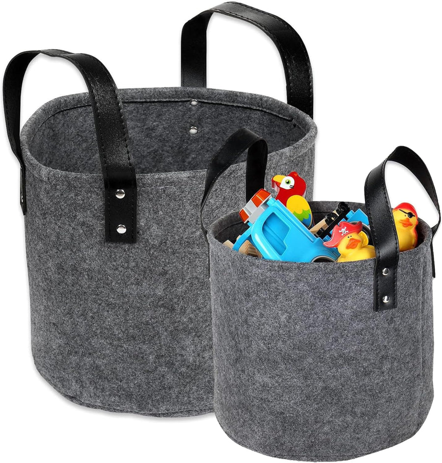 2 Stück Filzkorb Dunkelgrau Rund, Faltbarer Tragekorb aus Stoff, Filzkorb Gross, 2 Spezifikationen,