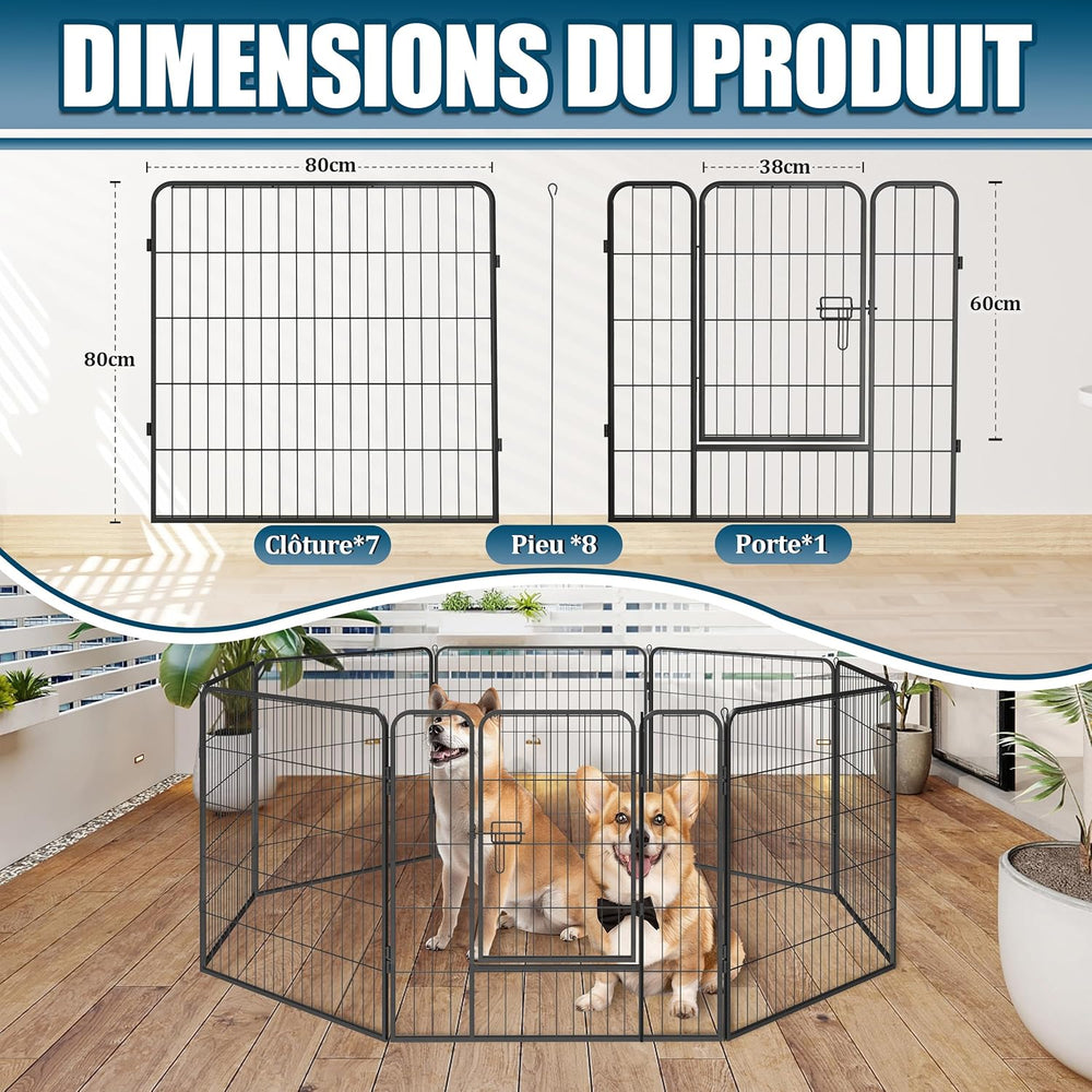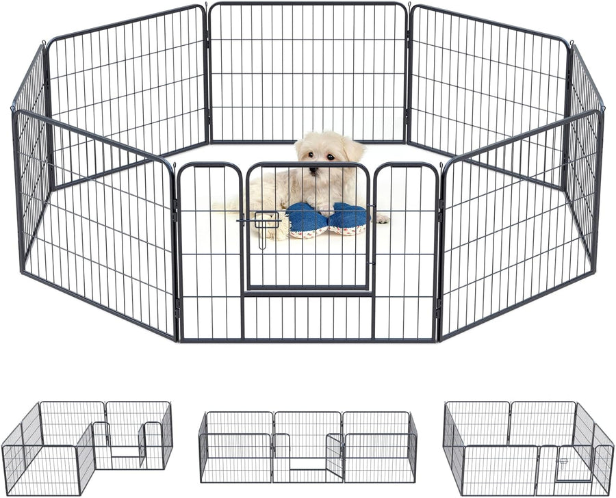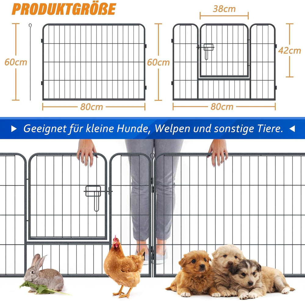 QianRuiDa Welpenauslauf 80 cm hoch 8-teilig Freilaufgehege für Hunde Hundezaun Hundelaufstall Freige