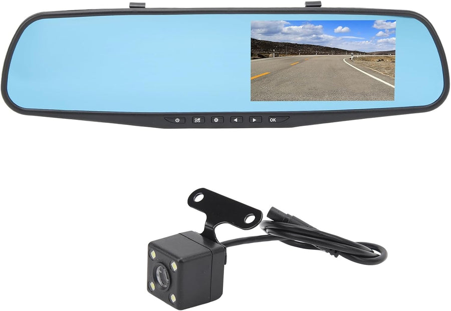 HD 1080P Doppelobjektiv-Spiegel-Dashcam, 4,3-Zoll-Anti-Glare-Parkmonitor-Rückfahrkamera (Mit 32g Spe