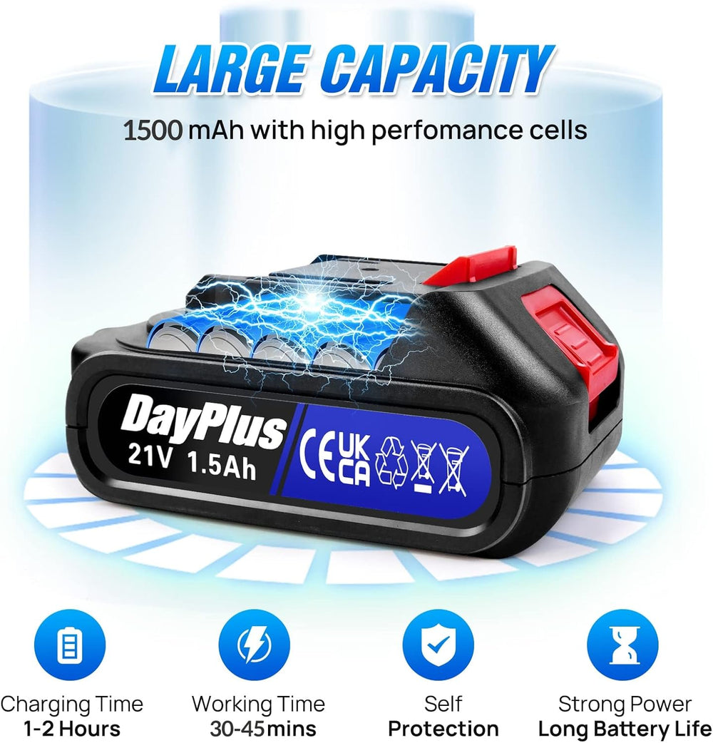 Qimu 21V Lithiumbatterie 1500mAh Akku mit grosser Kapazität für 21V Mini-Kettensäge,6 Zoll und 4 Zol