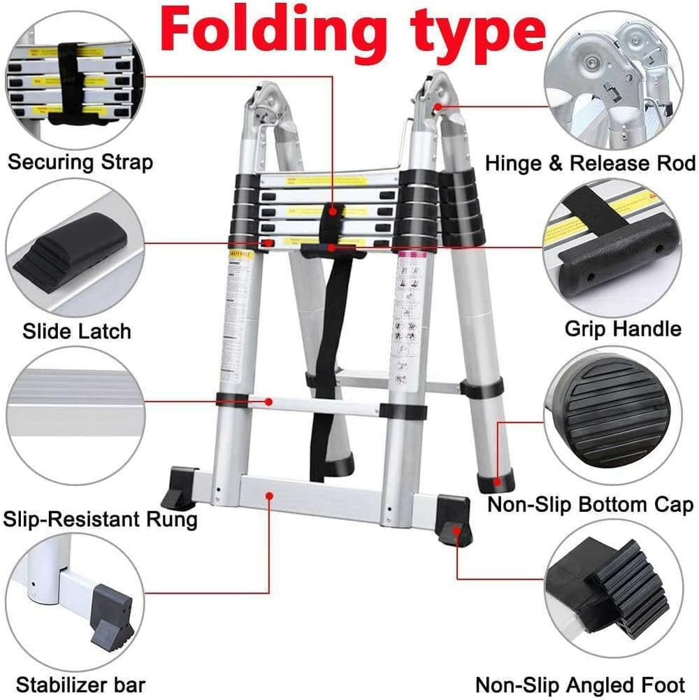 5M Teleskopleiter, Mehrzweckleiter,Rutschfester Aluleiter Klappleiter Schiebeleiter Sprossenleiter A