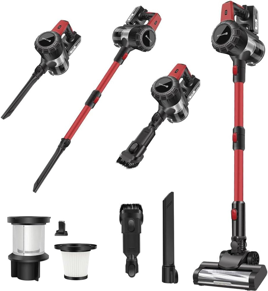 Akku Staubsauger 45000Pa/500W/40 min, Stielstaubsauger Kabellos Selbststehend Tierhaarentferner mit