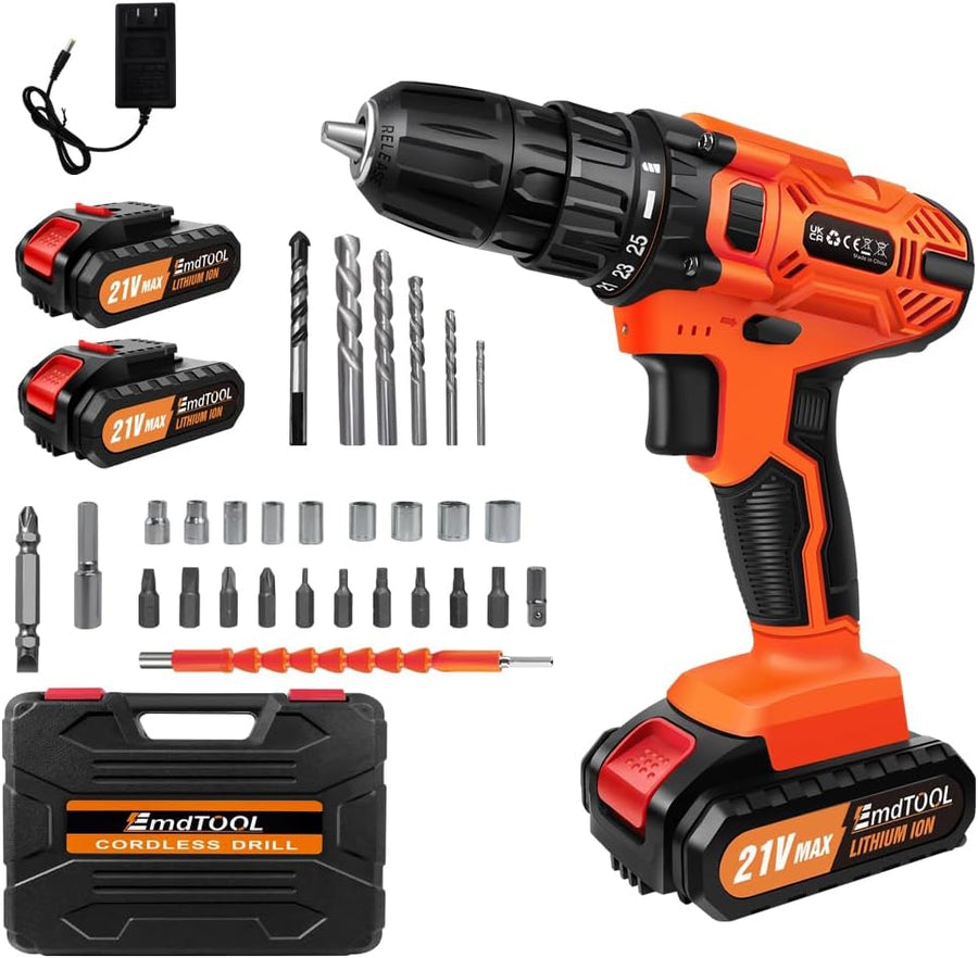 21V Akku Bohrschrauber Akkuschrauber Set Akkubohrer 25+1 Drehmoment, 45 N.m Max Akkuschrauber, 2-Gan