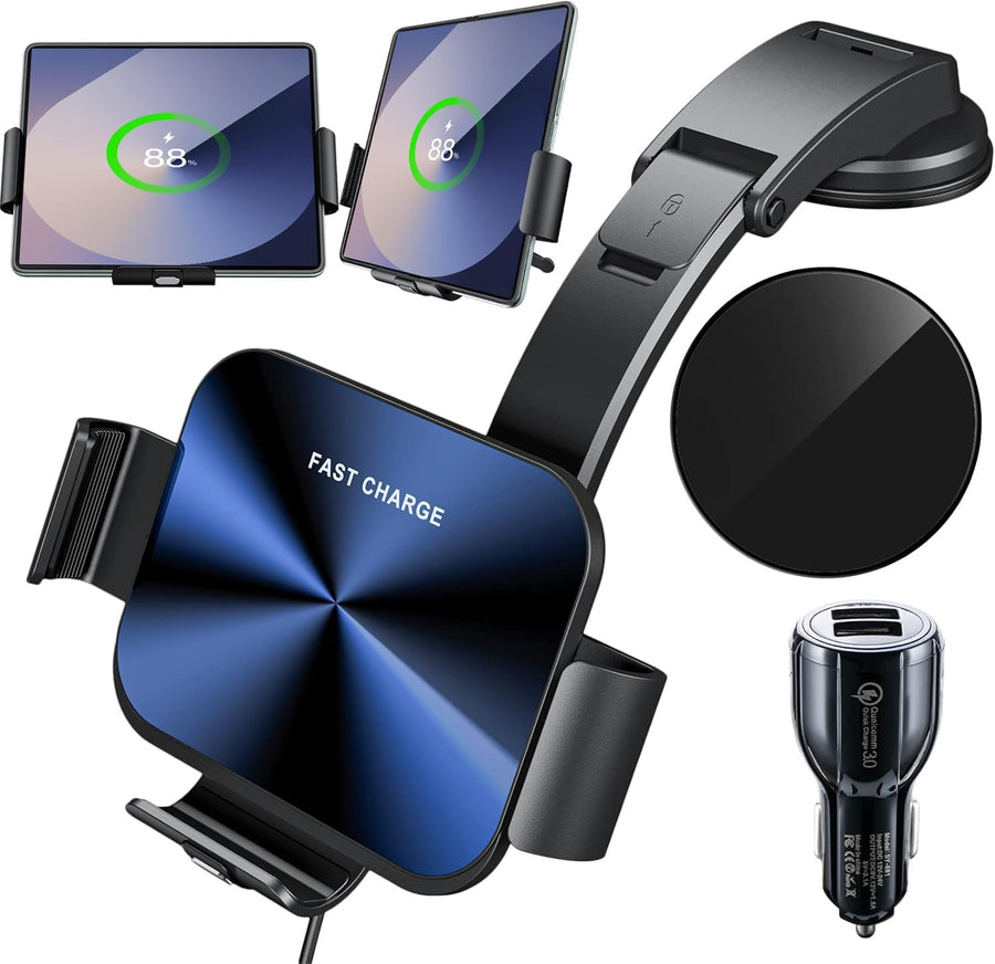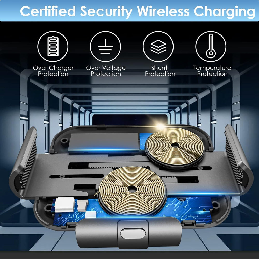 Qoosea 15W Fast Wireless Charger Auto Handyhalterung Mit Ladefunktion, Induktion Doppelspule Kabello