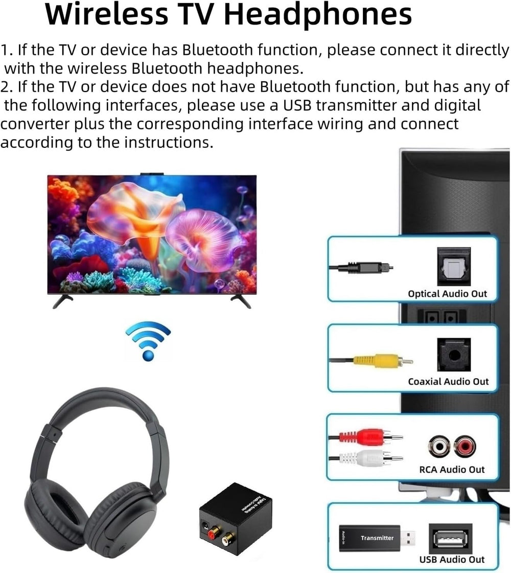 Kabelloses TV-Kopfhörer mit USB Transmitter für Senioren, Bluetooth5.3 Über-Ohr Headset, 30 Stunden