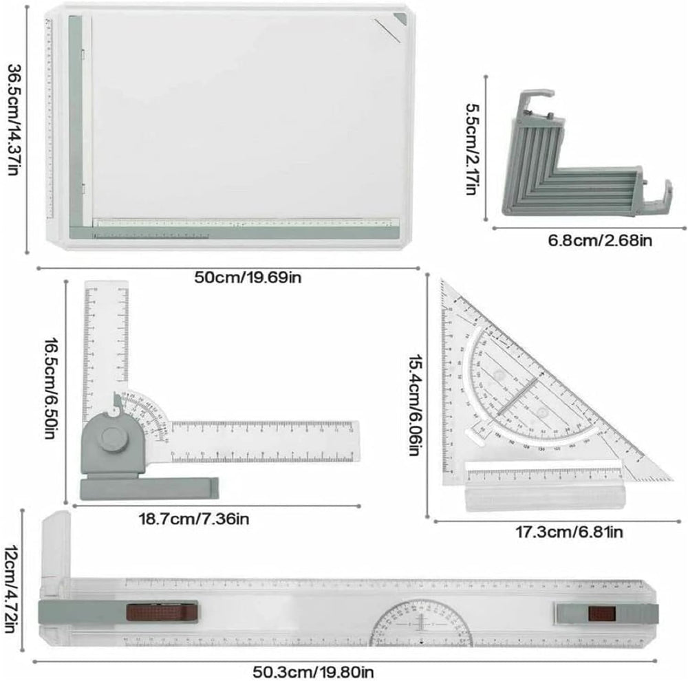 Queiting Zeichenplatte A3 Zeichenbrett Professioneller Zeichentisch mit Schiebelineal Zeichendreieck