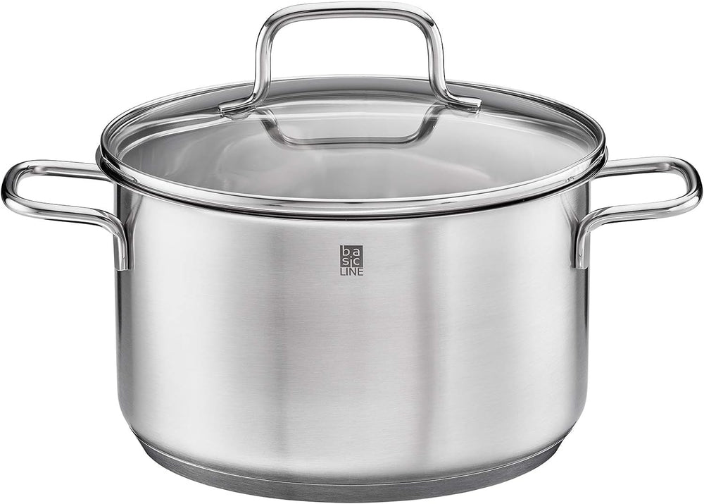 RÖSLE Basic Line Kochtopf Ø 24 cm, Universaltopf aus Edelstahl 18/10, mit Glasdeckel und Schüttrand,