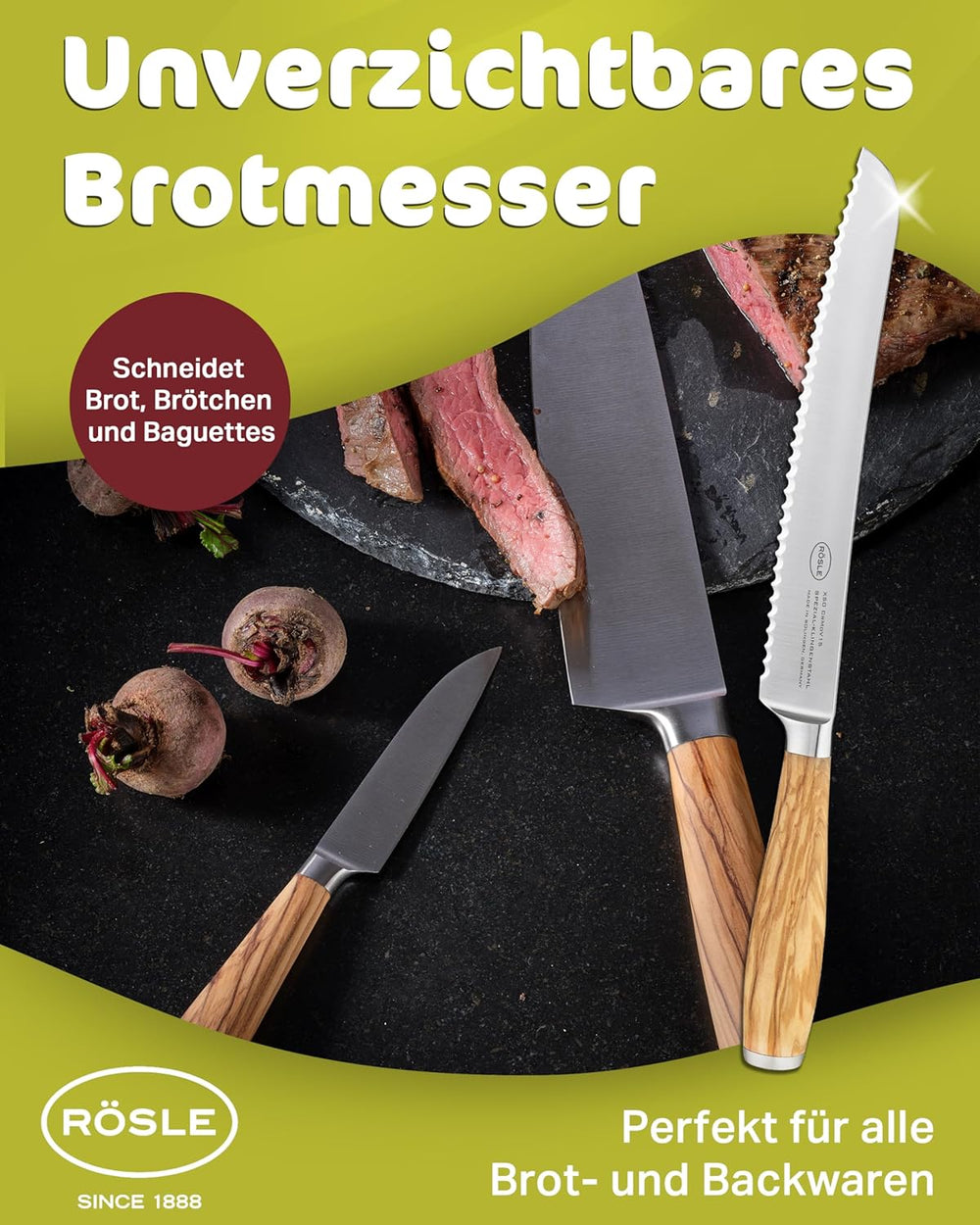 Rösle Brotmesser Artesano, Hochwertiges Küchenmesser zum Schneiden von Brot, Brötchen und Baguette,