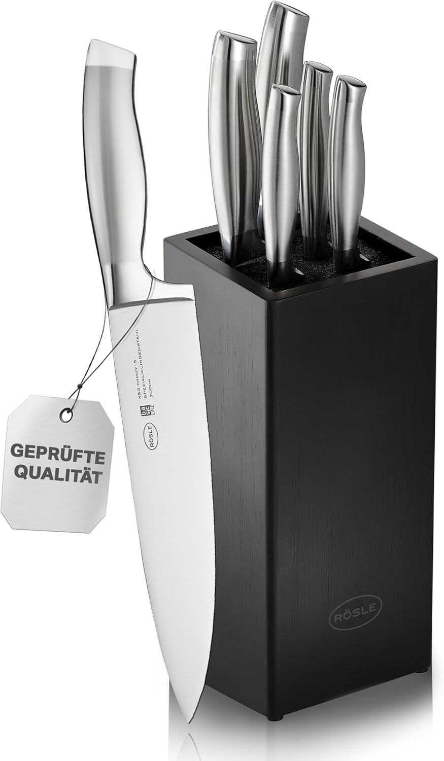 RÖSLE Bürsten-Messerblock Basic Line bestückt 6-tlg., Hochwertiger Messerblock aus Bambusholz mit 5