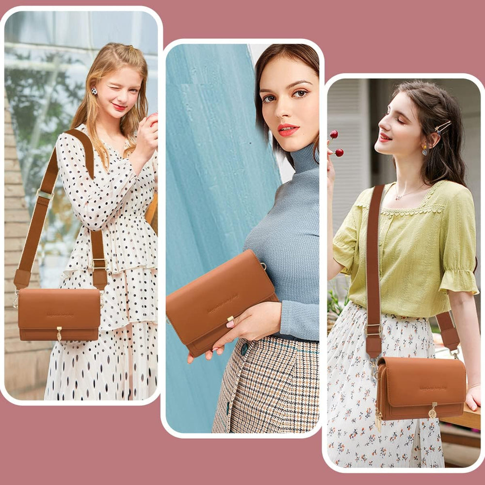 Handytasche zum Umhängen RFID Schutz Geldbeutel Damen Handy Umhängetasche Leder Viele Fächer Handy S