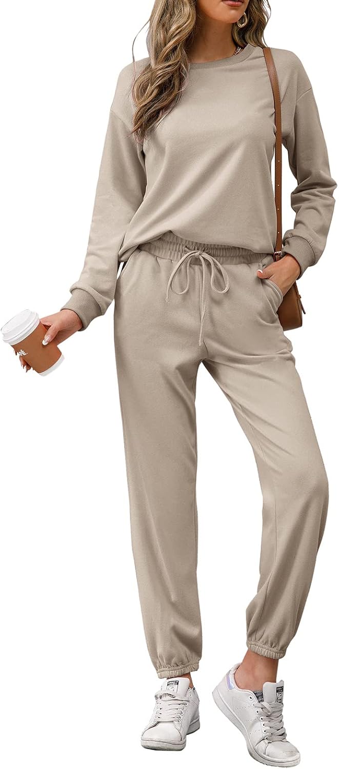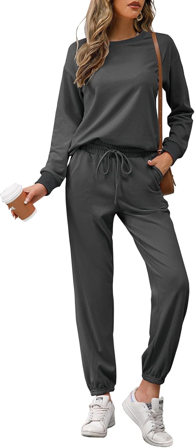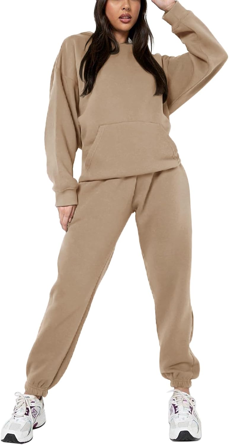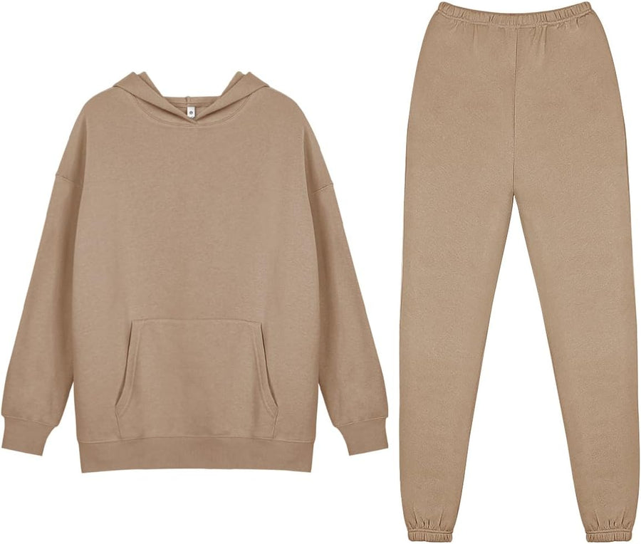 REORIA Damen Tracksuit Langarm Rundhalsausschnitt Einfarbig Zweiteiler Outfit Hoodie Jogger Training