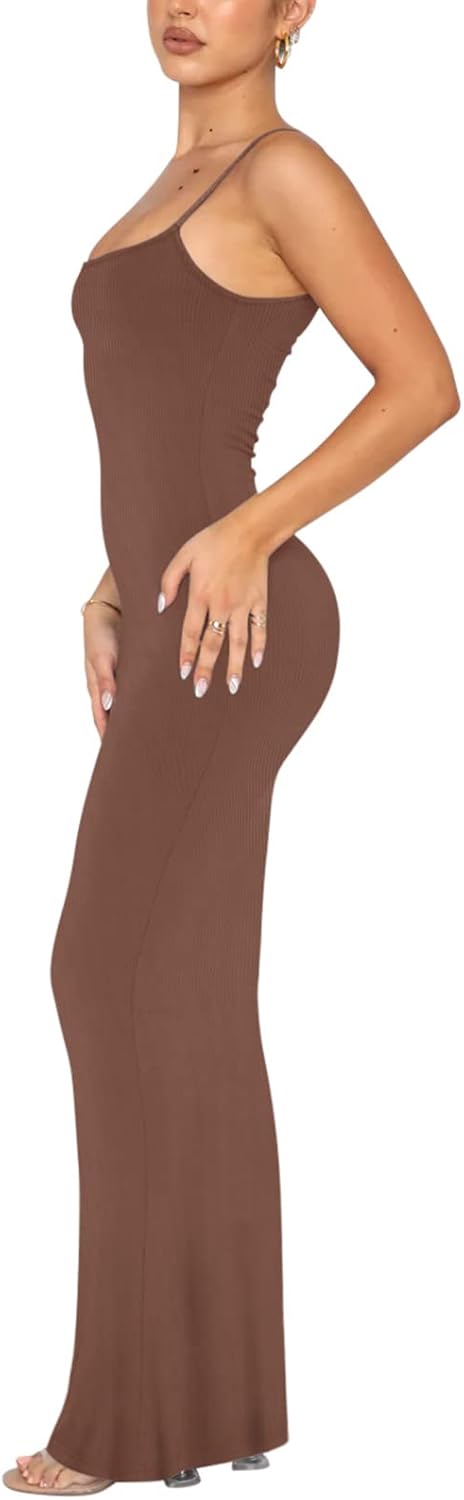 REORIA Damen Sexy Lounge Slip Langes Kleid Elegantes Hochzeitsgast ärmelloses rückenfreies Geripptes