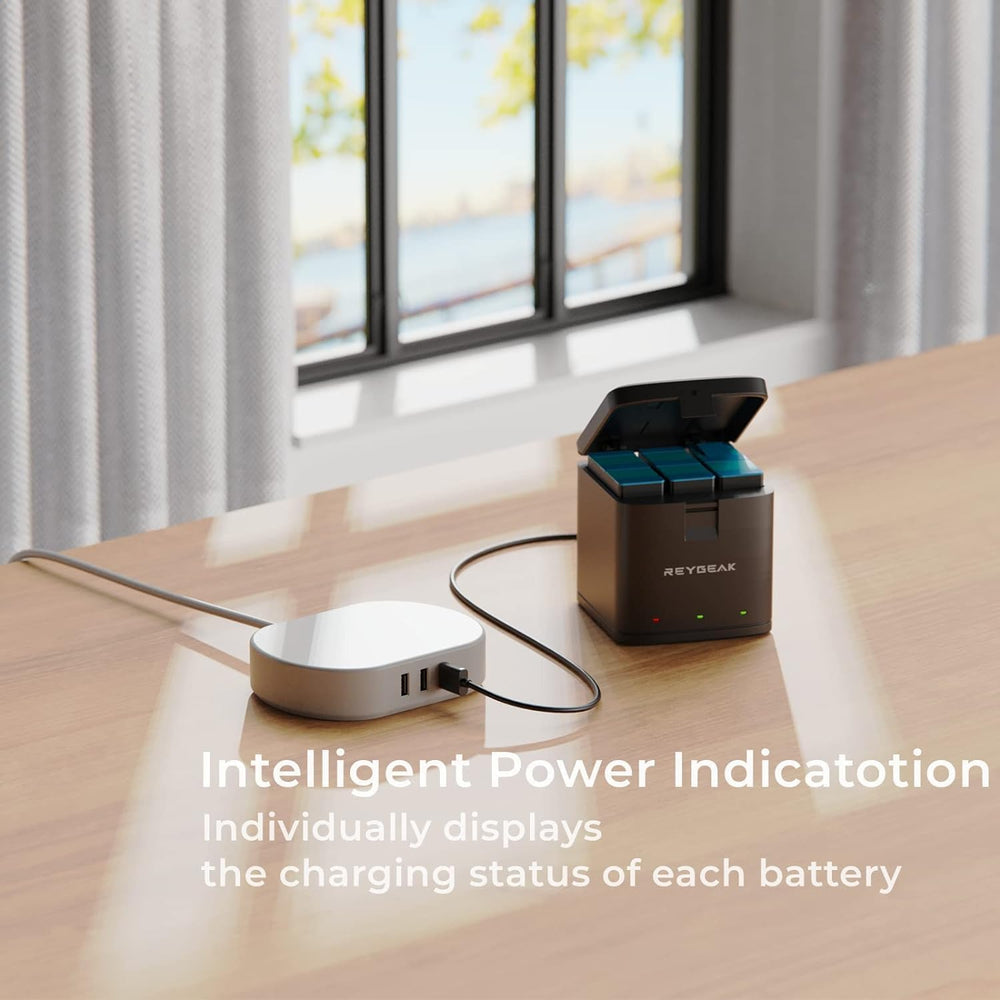 REYGEAK Hero 12/Hero 11 Akku Hero 10/9 Akku und 3-Kanal LED Ladegerät ,Akkus für GoPro Hero 12/11/10