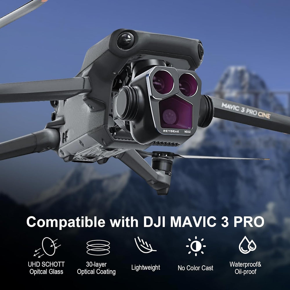REYGEAK ND-Filter-Set für DJI Mavic 3 Pro/Pro Cine, 4er-Pack ND8/ND16/ND32/ND64 für DJI Mavic 3 Pro