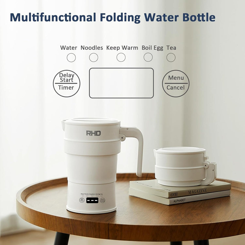 RHD 0.7L faltbarer elektrischer Wasserkocher,tragbarer Camping Wasserkocher mit Echtzeit-Temperatura