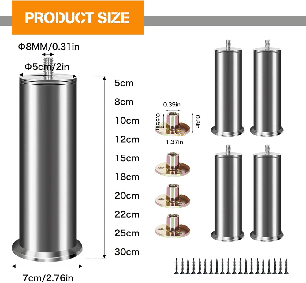 4 Stück Möbelfüsse Edelstahl, 25cm Sofa Füsse, Möbelbeine Metall, Für Schrankfüsse Bett Beine/Sofa B