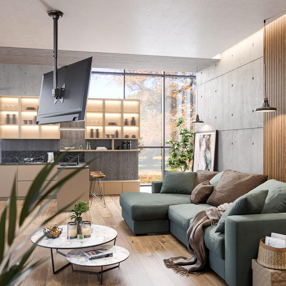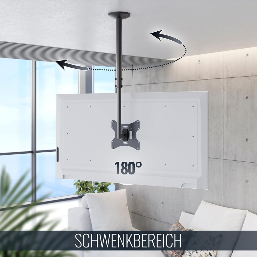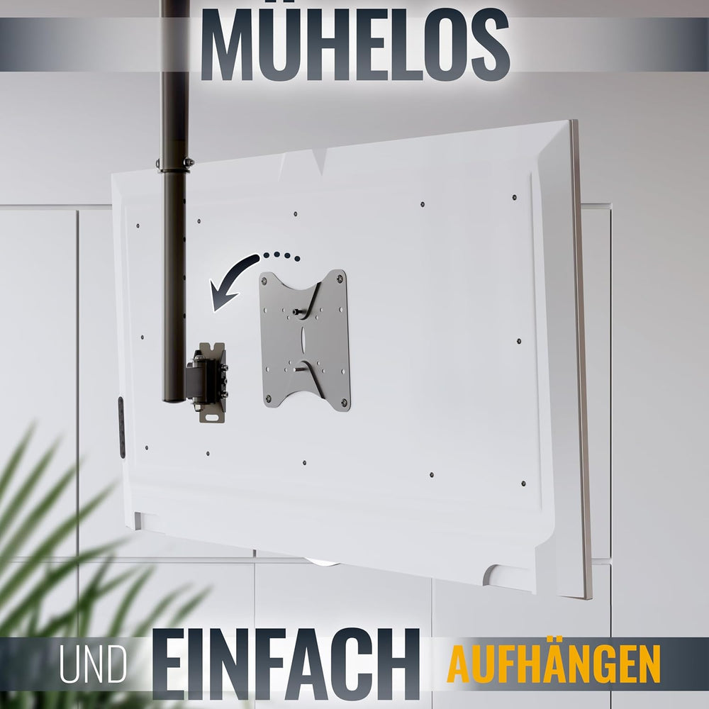 RICOO Monitor & TV Deckenhalterung für Fernseher 23-42 Zoll, Schwenkbar Neigbar Höhenverstellbar, Un