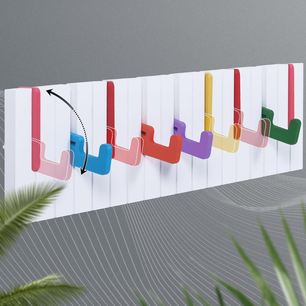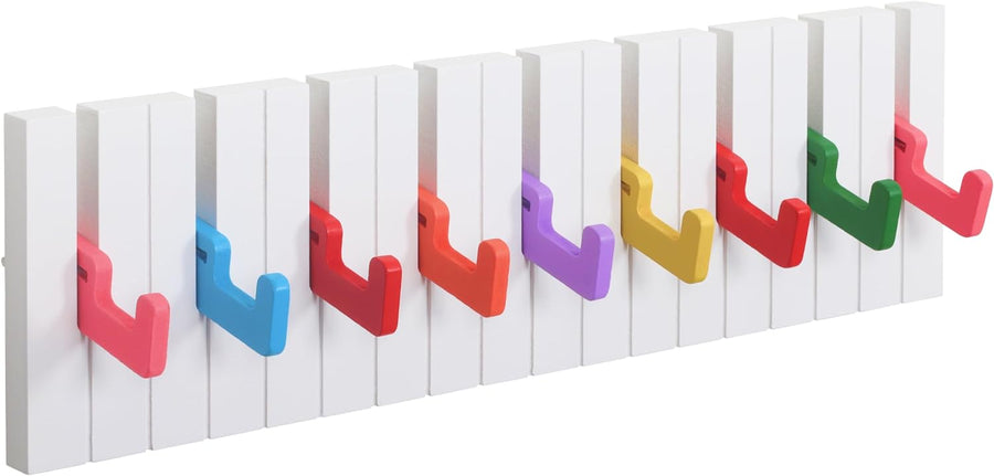 RICOO Garderobenhaken Wandhaken WM1885-L, Kindergarderobe Hakenleiste Klavier Design, Bunte Holz-Gar