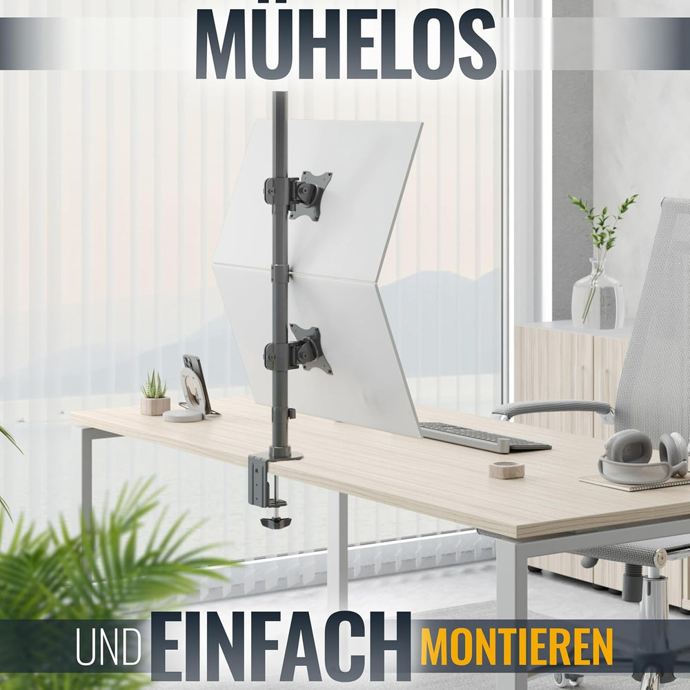 RICOO Dual Monitor Halterung Übereinander Tisch, VESA Tischhalterung für 13-27 Zoll, Monitorhalterun