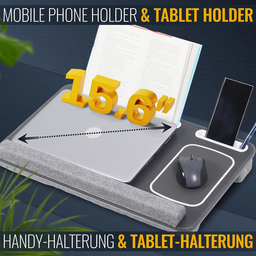 RICOO Laptopkissen Knietablett in Holzoptik für max. 15,6 Zoll Notebook, Kissentablett LA0018, Lapto