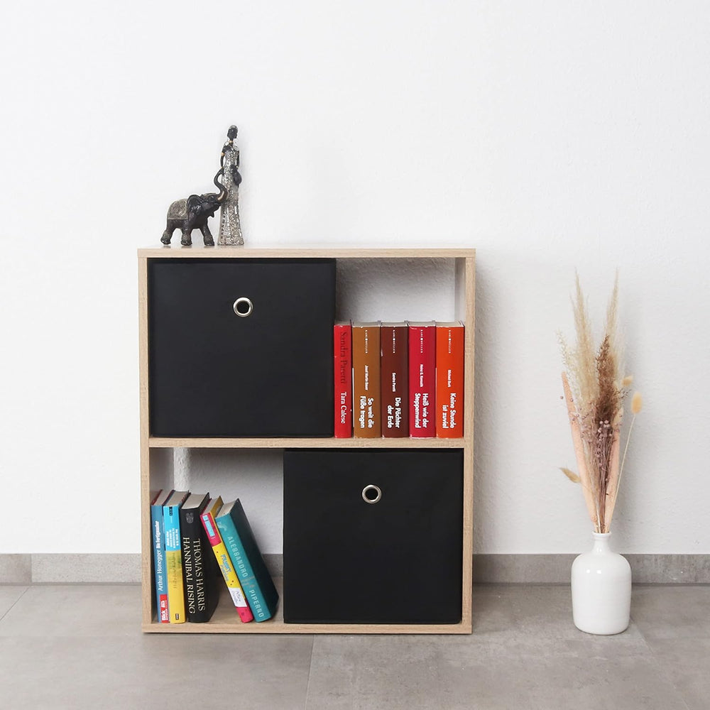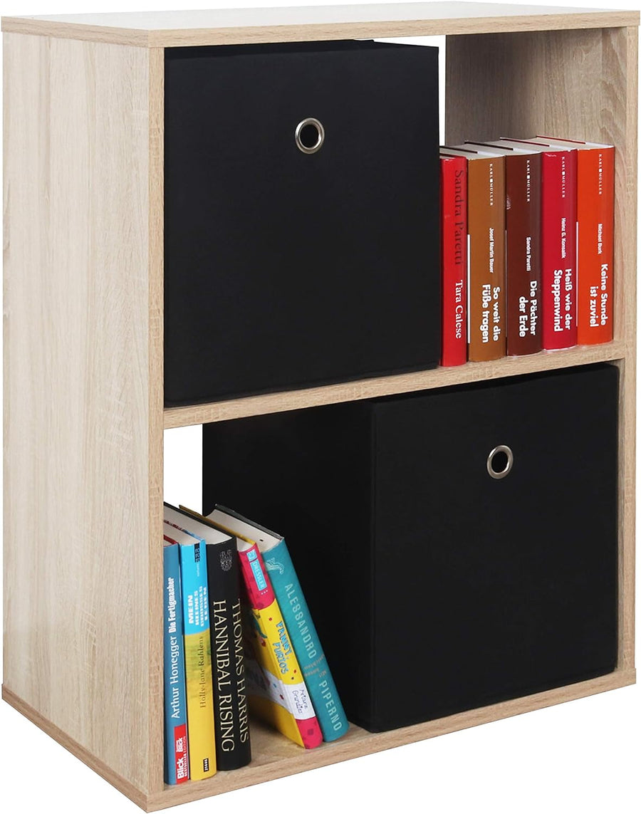 RICOO Bücherregal 2 Fächer 71 x 60 x 31cm schmales Regal Spannplatte aus Holz Eiche Sonoma braun WM1