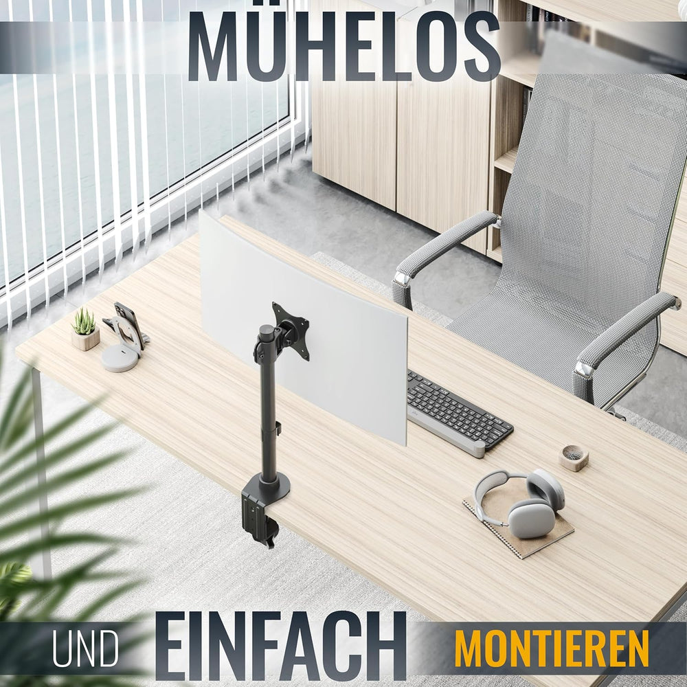 RICOO Monitor Halterung Tisch, VESA Tischhalterung für 13 - 27 Zoll, Monitorhalterung 1 Monitor Arm