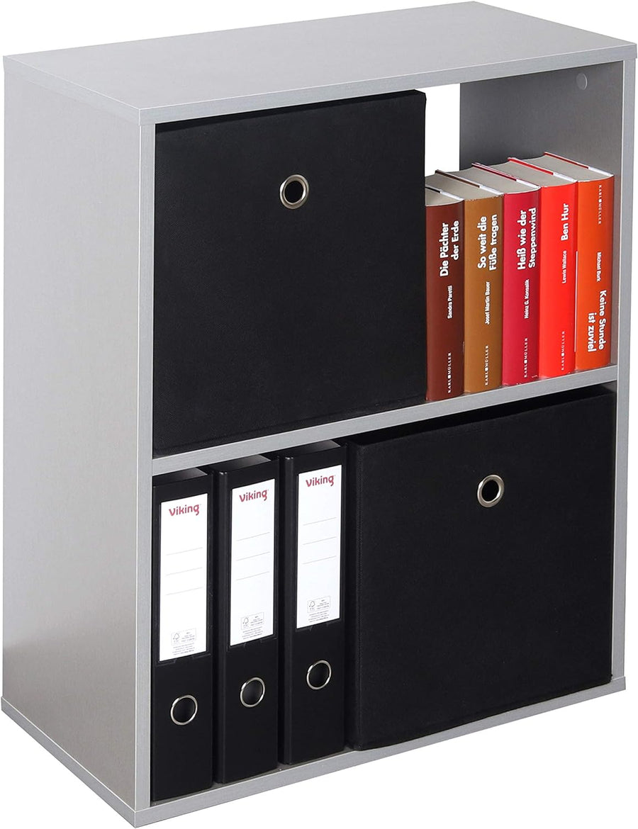 RICOO Bücherregal 2 Fächer 71 x 60 x 31 cm Regal Spannplatte aus Holz Modern grau WM111-PL, Standreg