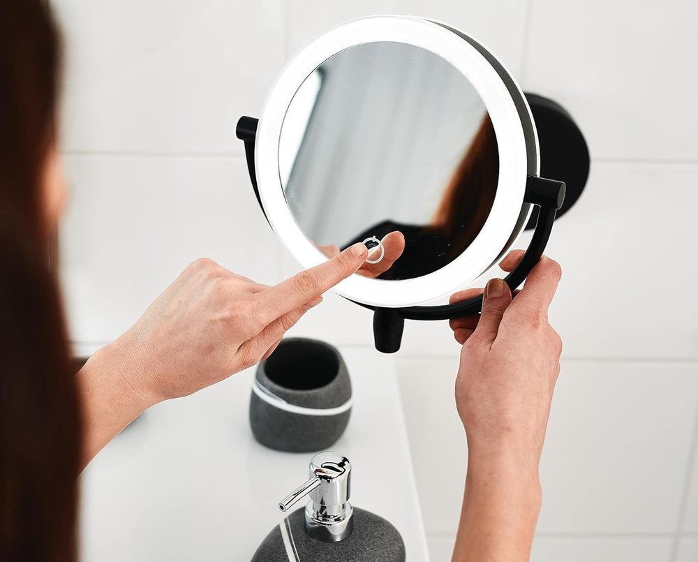 RIDDER Spiegel, Kosmetikspiegel, Schminkspiegel, Hängespiegel Shuri, schwarz | Touch | Dimmer | 5x-V