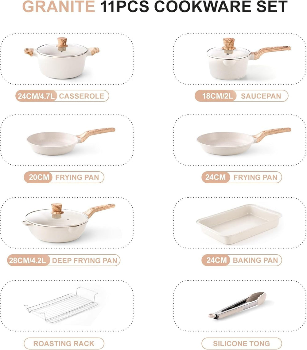 RIOVARM Induktion Töpfe und Pfannen Set, Antihaft beschichtung Granit Kochgeschirr-Set mit Deckeln,