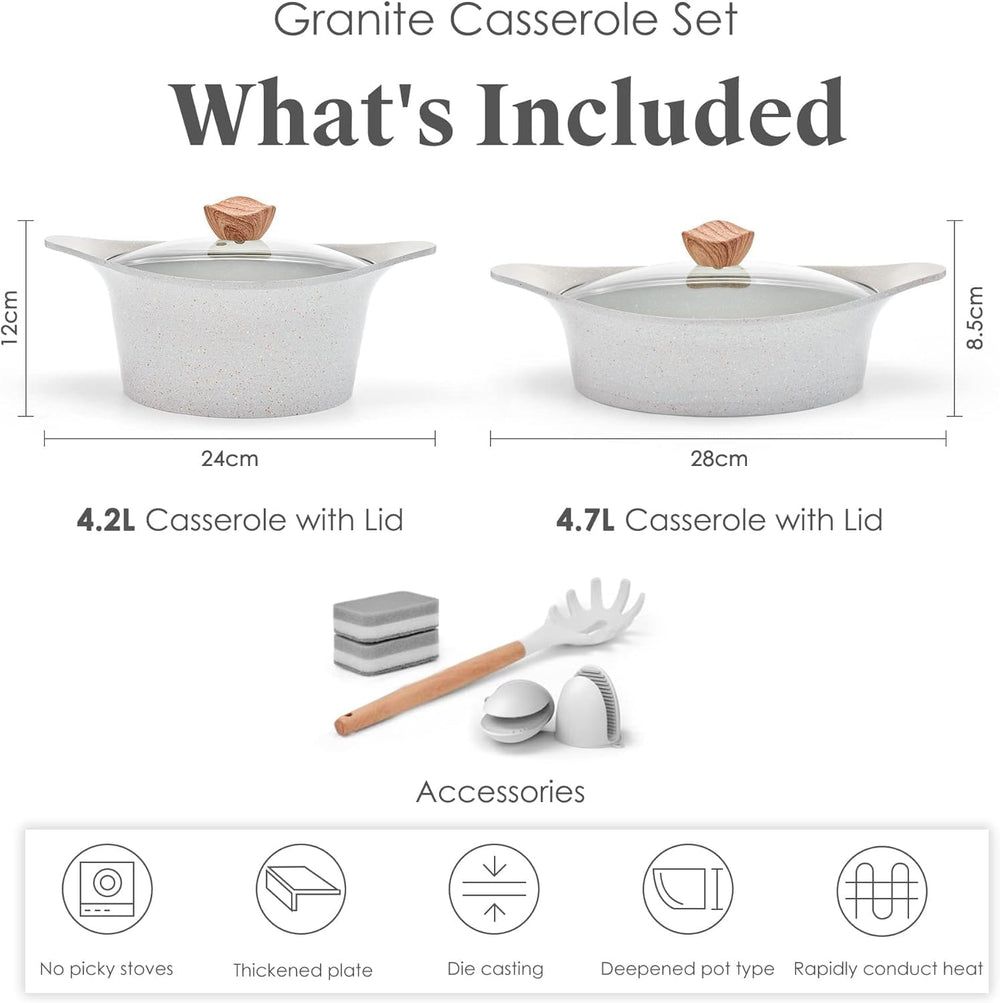 RIOVARM Induktion Topfset Antihaft Granit Töpfe mit Deckel Keine PFOA 2 Stück Kochgeschirr Set Mehrz