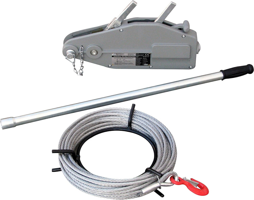 Rotek Seilzug SZ-1600, Kapazität 1.600kg inkl. 20m Spezialseil auf Haspel mit 20m Drahtseil, mit 20m