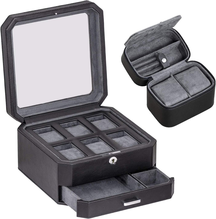 ROTHWELL Geschenkset 6 Slot Leder Uhrenbox und 2 Uhren Reiseetui - Luxus Uhrenetui Organizer, Aufbew