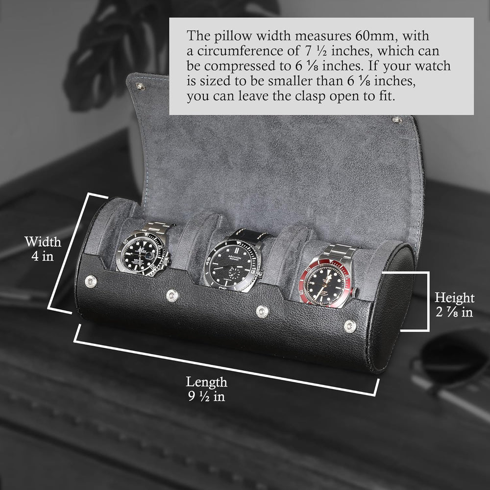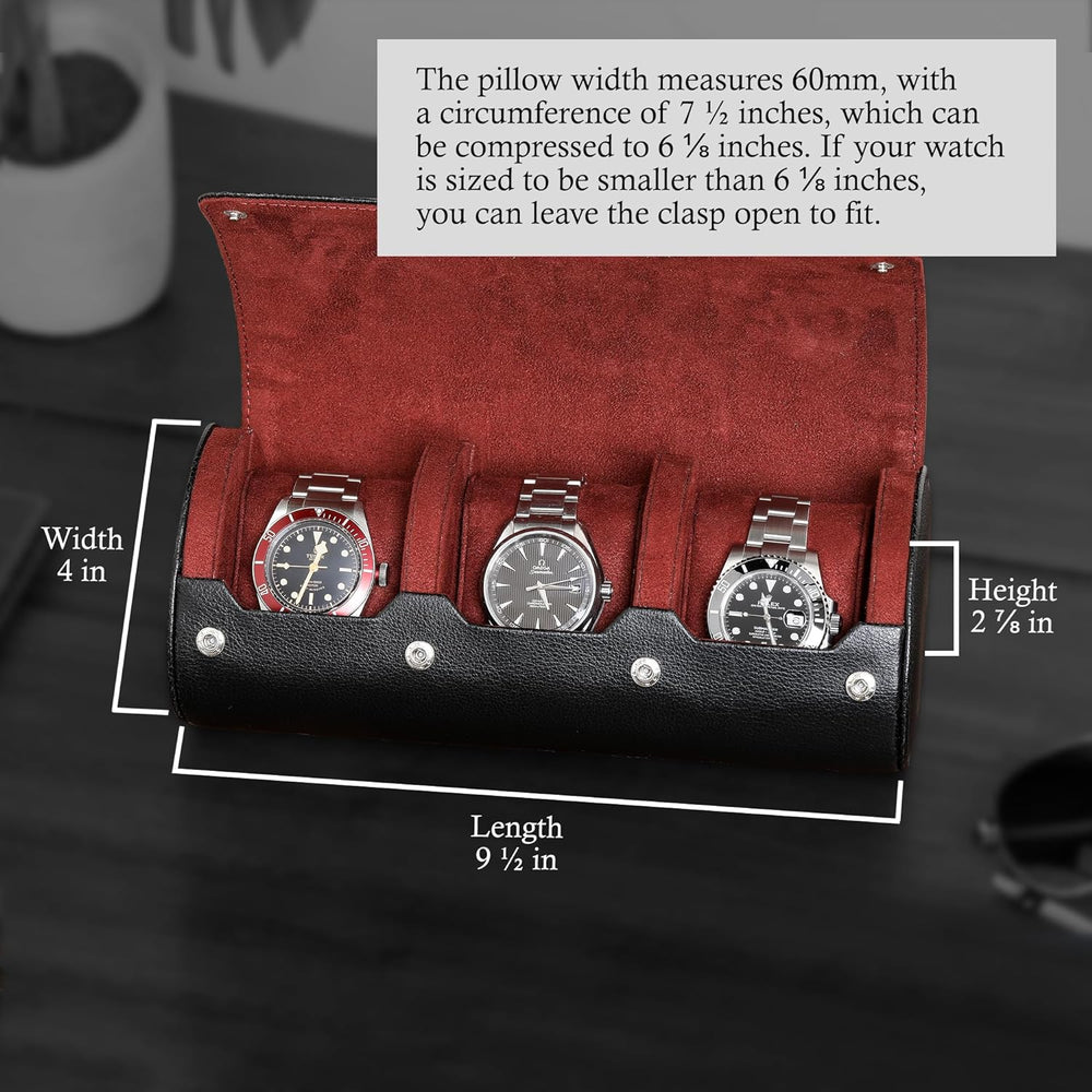ROTHWELL Uhrenrollen-Reiseetui für 3 Uhren | Robuster tragbarer Schutz, passend für alle Armbanduhre