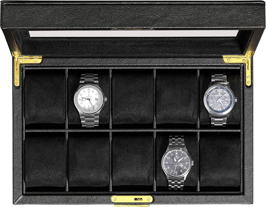 ROTHWELL Uhrenbox mit 10 Fächern – Luxus-Uhrenetui mit weichem Futter, abschliessbarer Schmuckuhrenh