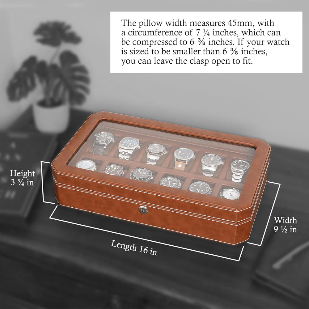 ROTHWELL 12 Slot Leder Uhrenbox für Herren - Luxus Uhrenetui Display Organizer, Herren Aufbewahrungs