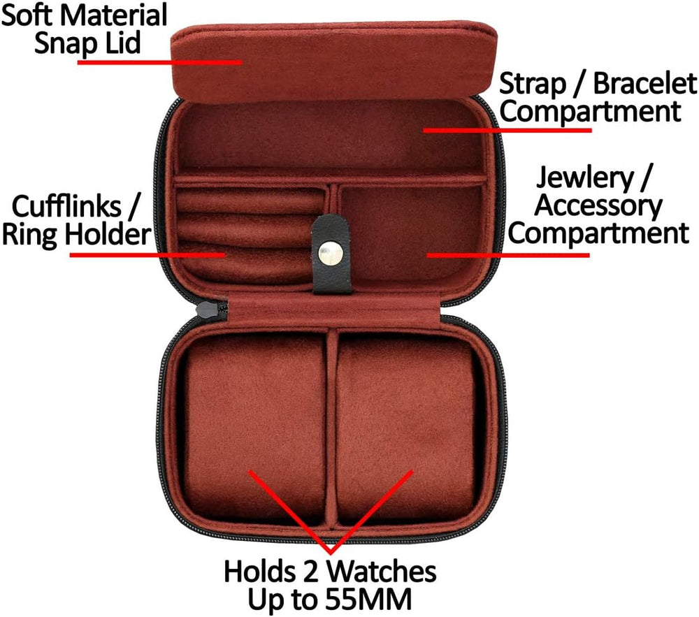 ROTHWELL 2 Uhren Reiseetui Aufbewahrung Organizer für 2 Uhren | Robuster, tragbarer Schutz mit Reiss