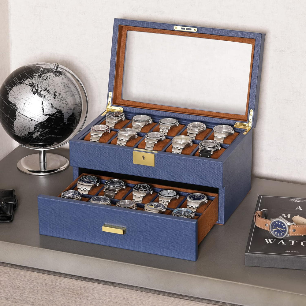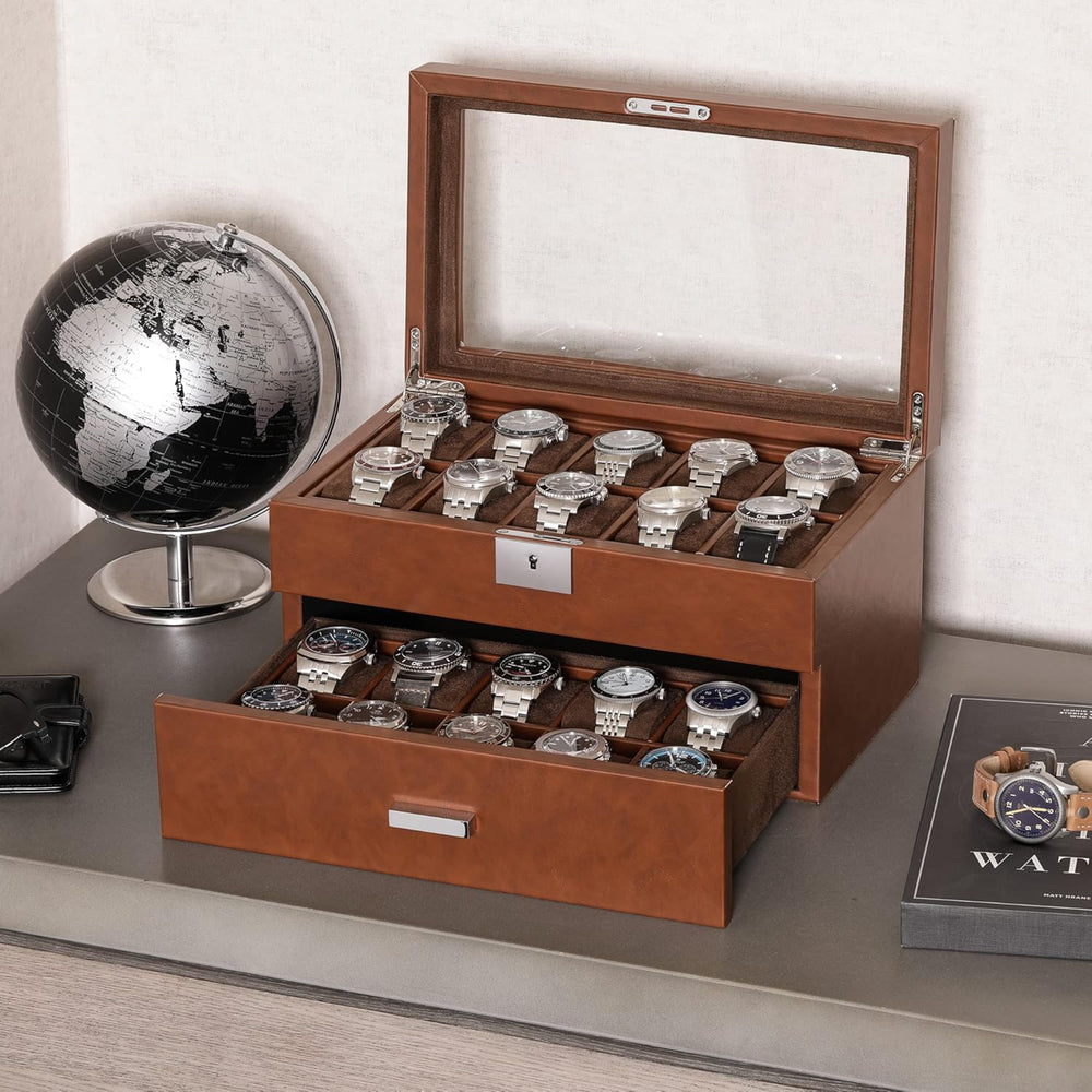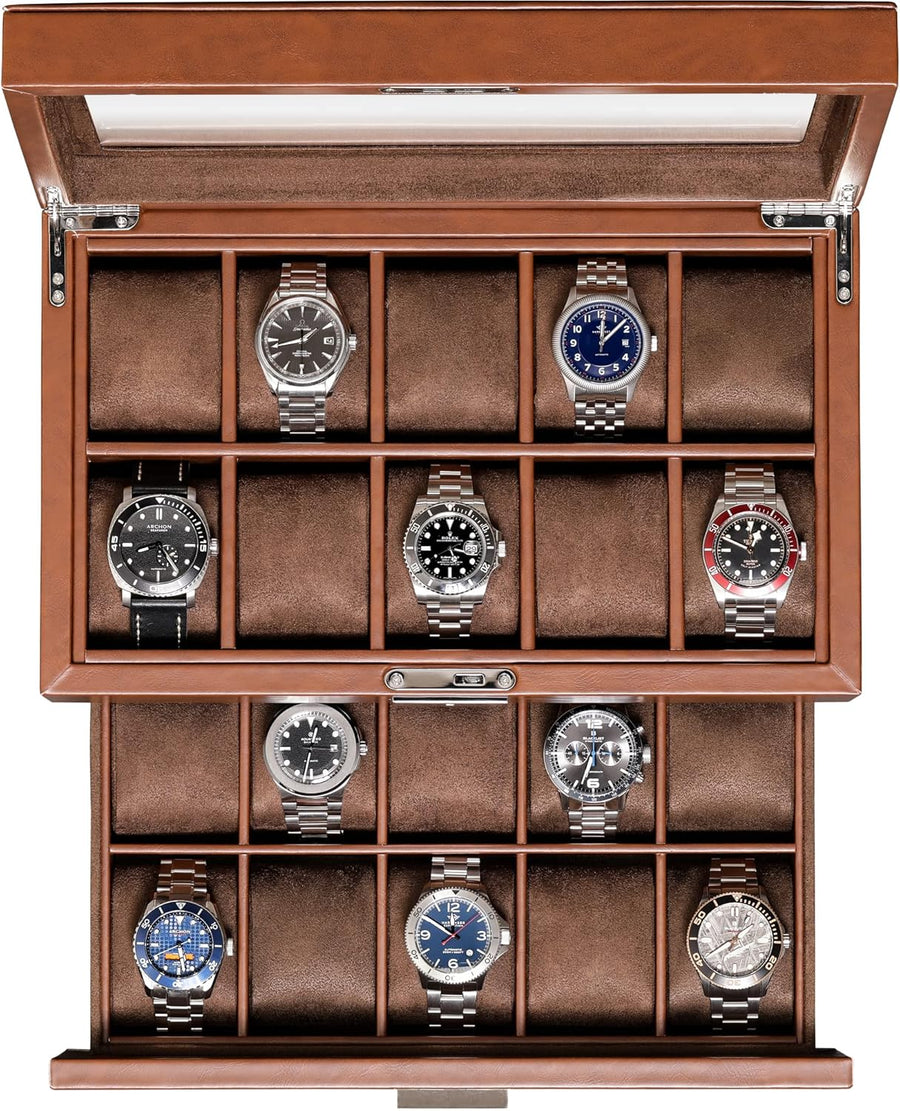 ROTHWELL Uhrenbox aus Leder mit 20 Fächern, luxuriöses Uhrengehäuse, Schmuck-Organizer, verschliessb