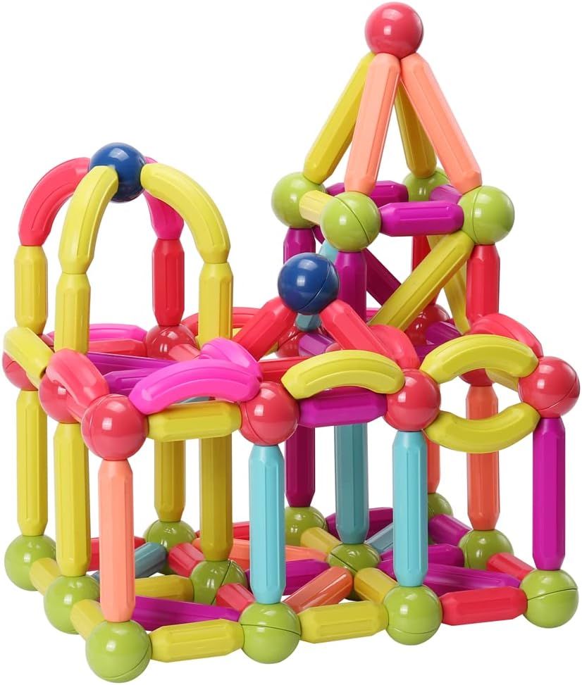 Magnetische und Stangen, 88 Stück magnetische Kugeln, Magnetbaustäbchen-Set, Bausteine, Fliesen, STE