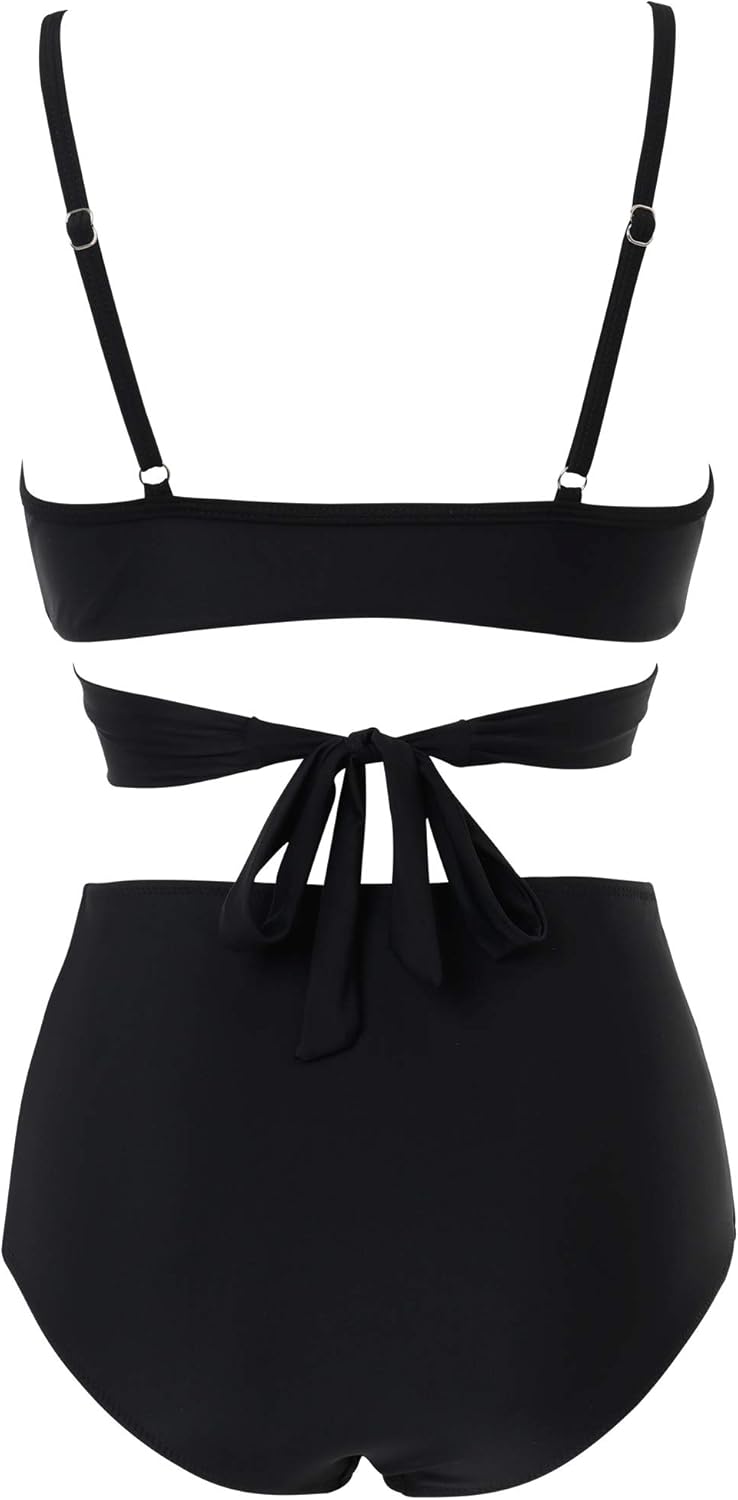 RXRXCOCO Damen Wickel Push Up bikini Oberteil Bauchweg High Waist Bikini Set Bademode M Schwarz, M S