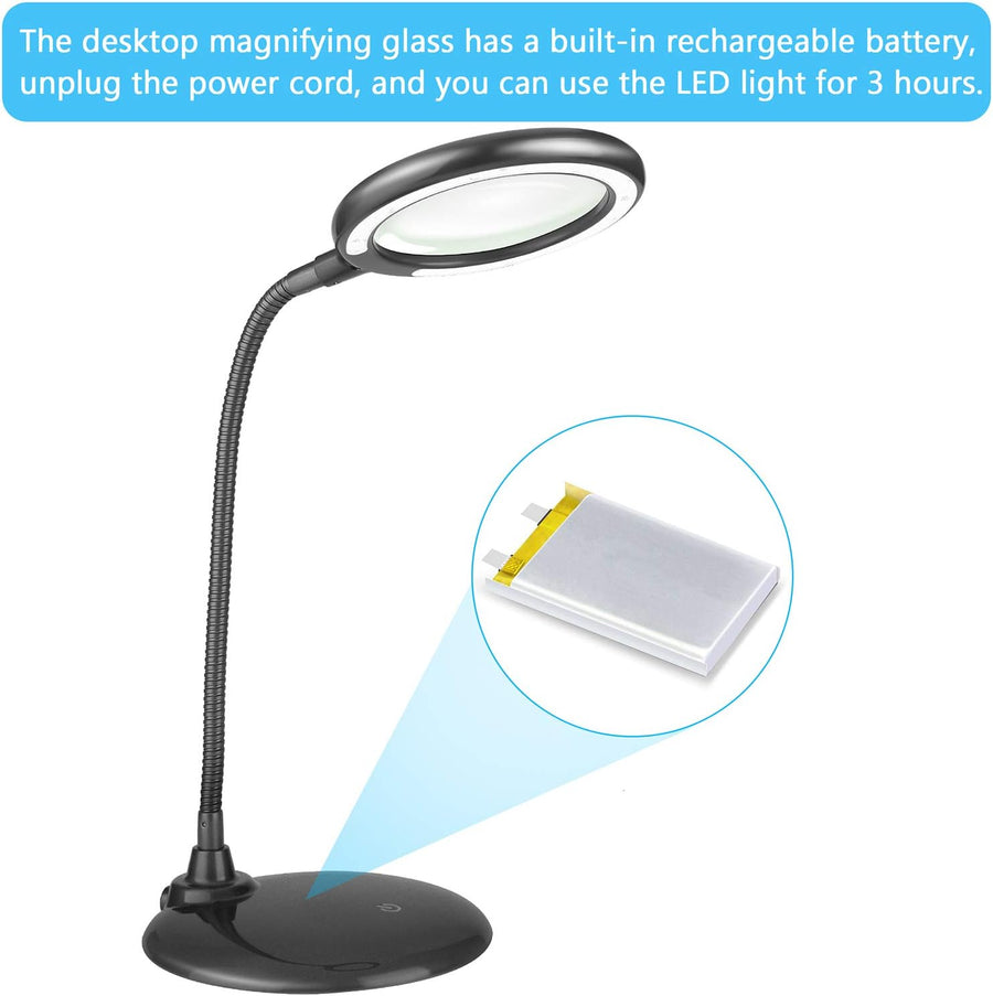 5x Lupe Mit Licht und StäNder, Wiederaufladbare, Dimmbare Led-Lupe, Tischlupe Mit Led-Beleuchtung Fü